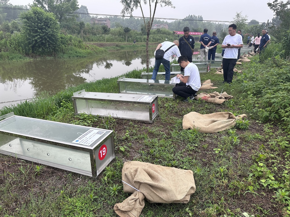 Workers from the Anhui Chinese Alligator National Nature Reserve prepare the release of captive-bred Chinese alligators, on June 1, 2023. [Photo by Yan Dongjie/chinadaily.com.cn]