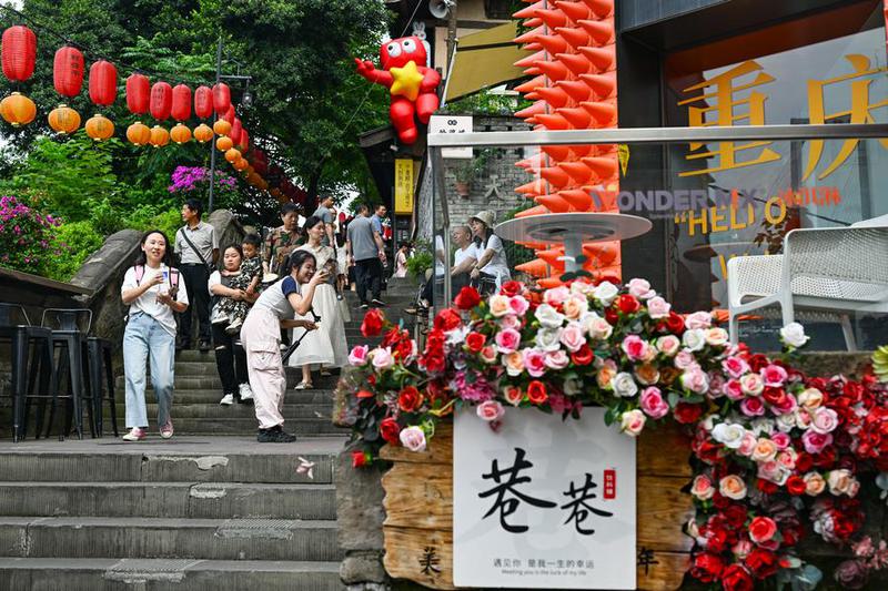 Tourists visit an alley in Yuzhong district, Southwest China's Chongqing municipality, June 8, 2025. [Photo/Xinhua]